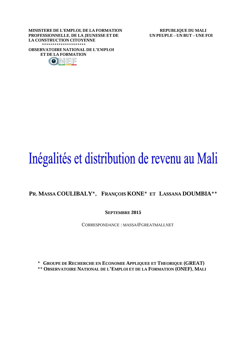 Auteurs:PR. MASSA COULIBALY, FRANÇOIS KONE ET LASSANA DOUMBIA